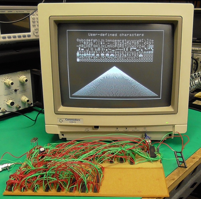 All the video graphics screen-shots shown, taken from my Commodore 1084S monitor, were generated by this veroboard video hardware.